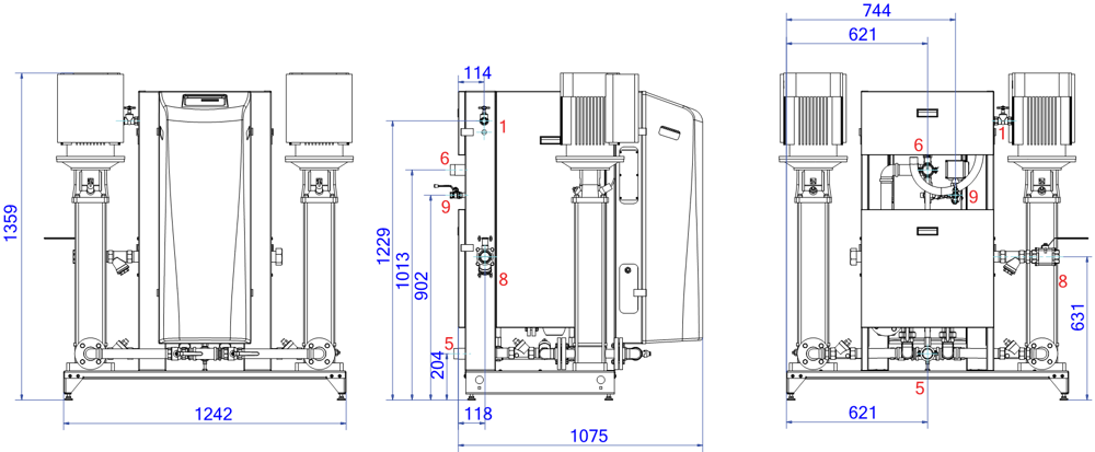 Groupe de maintien de pression automatique à pompes électroniques (VFD intégré) - 2 pompes (2X 50%) - 1 vanne de décharge motorisée réglable à distance. Modèle modulaire : un vase pilote est requis.