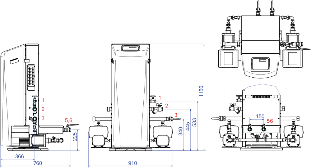 - 2 vannes de trop-plein à commande électronique (2x 100 %)