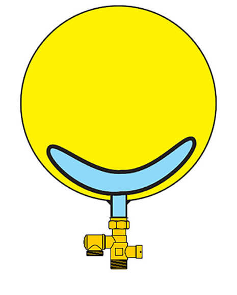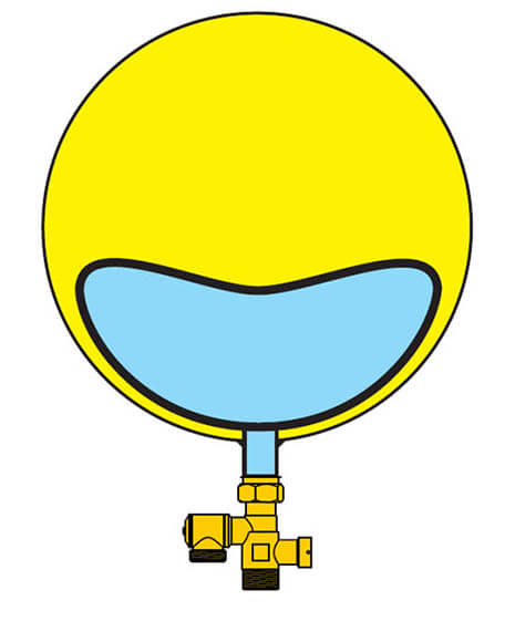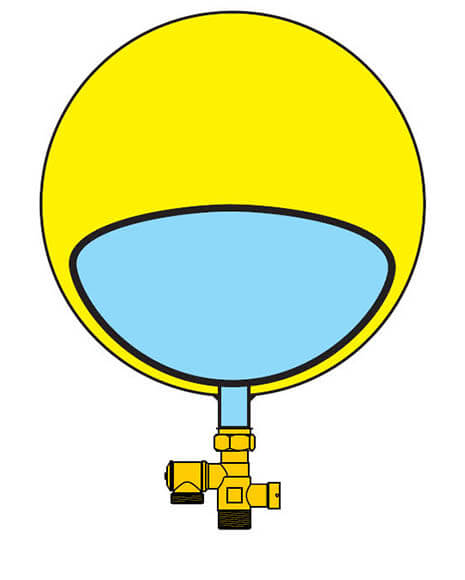 La membrane de poche est utilisée pour absorber le changement de volume de l’eau du système lorsqu’elle est chauffée. La prépression dans la chambre à gaz du vase d’expansion repousse l’eau du système dans l’installation pendant qu’elle refroidit.